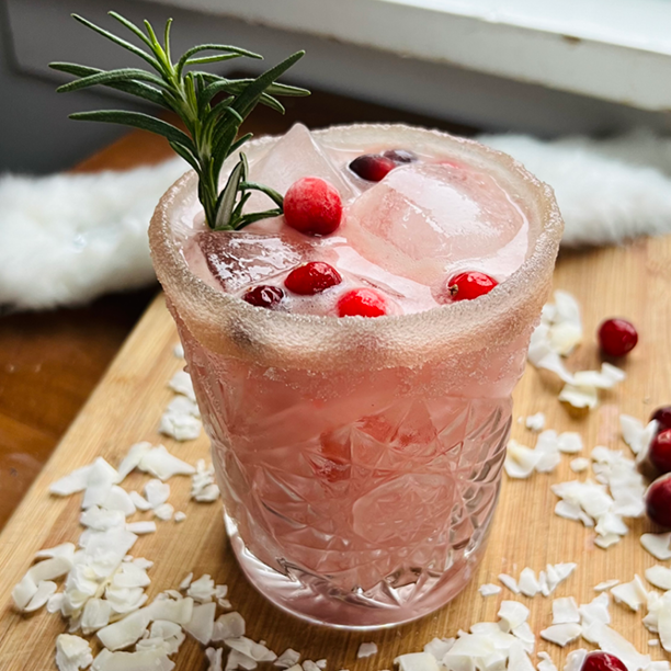 - Rim glass with coconut flakes
