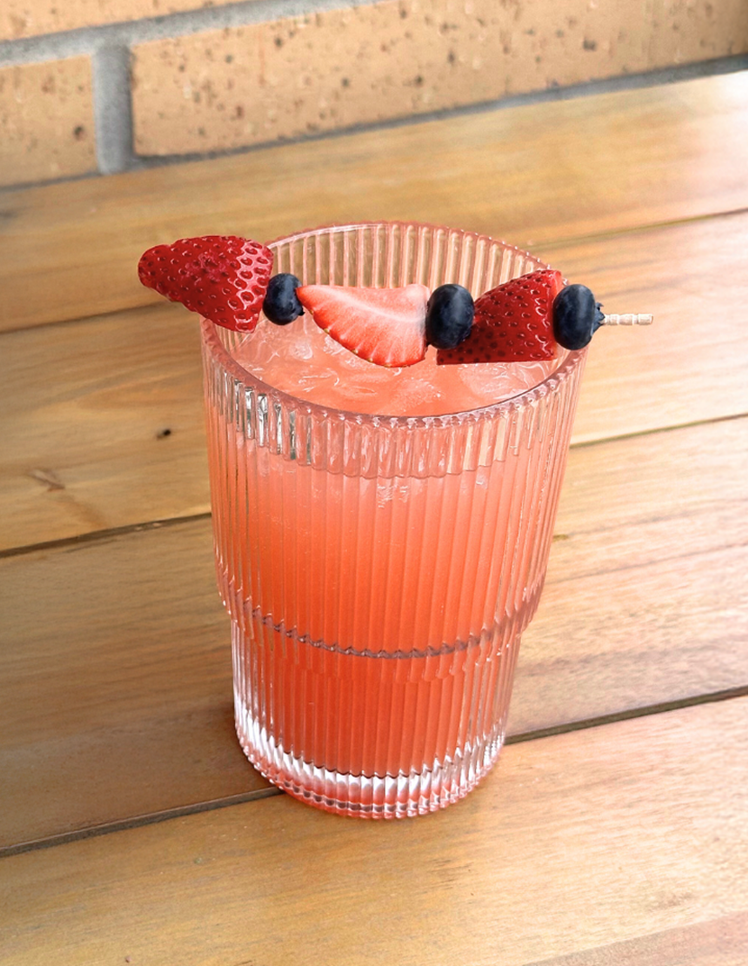 - Add strawberries to rim of glass & enjoy!