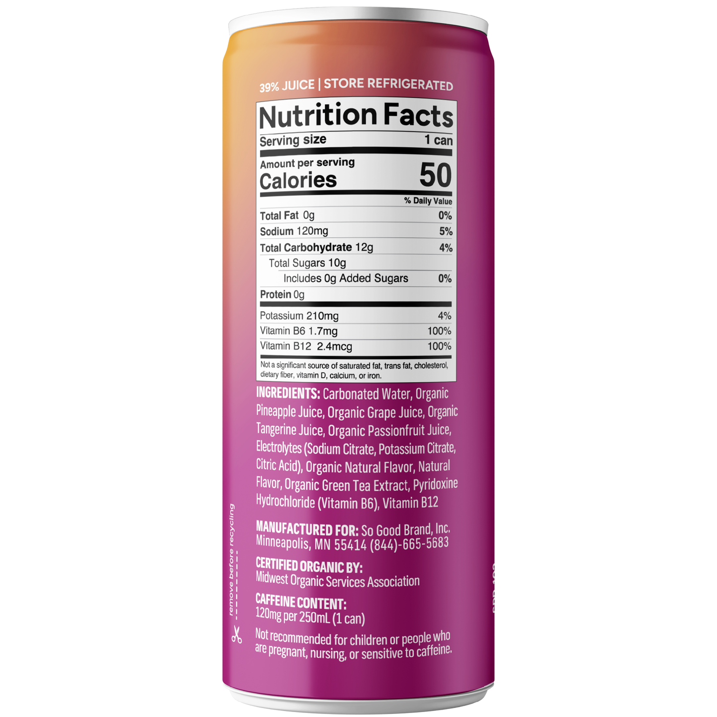 Pineapple and passionfruit blend into a smooth, refreshing sip with real fruit flavor you can taste. Clean ingredients and feel-good energy make this bright, tropical drink an easy everyday favorite.